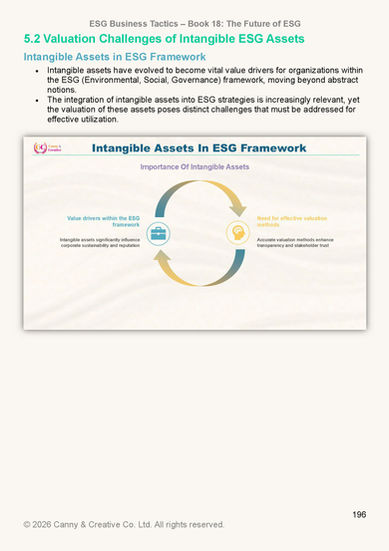 5. Intangible Assets: Lastly, the text addresses the valuation challenges of intangible assets within ESG frameworks, asserting that effective management of these assets can lead to better financial performance.
